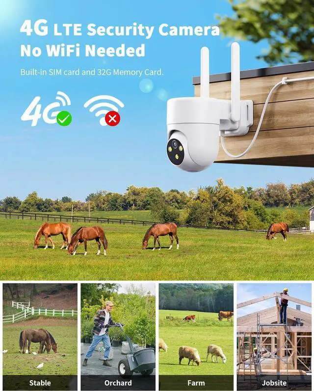 4G Camera No WiFi Needed: With 4G LTE connection, liwan 4g lte cellular security camera can use it even when there' s no wifi coverage! Such as garages, farms, orchards, ranches, or vacation homes and RVs ( NoteThis Camera is not wifi camera, can not support 2.4GH z ang 5g wifi, You have to subscribe to 4g data plan and top up to use it). Just plug it into a power source and it can be used indoors or outdoors in any off-grid areas