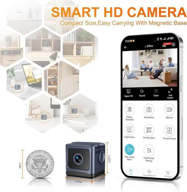 1. Calidad de imagen de alta definición y visión nocturna: La calidad de imagen de ultra alta definición se combina con una lente gran angular ajustable de 150 °, que cubre un área de monitoreo grande, asegurando que no se pierda ninguna actividad sospechosa durante el día o la noche. La mini cámara admite el control remoto de una función de rotación de 150 ° a través de una aplicación de aplicación, lo que permite el monitoreo remoto en cualquier momento y en cualquier lugar, adecuado para protección de seguridad en el hogar, la oficina o los viajes.