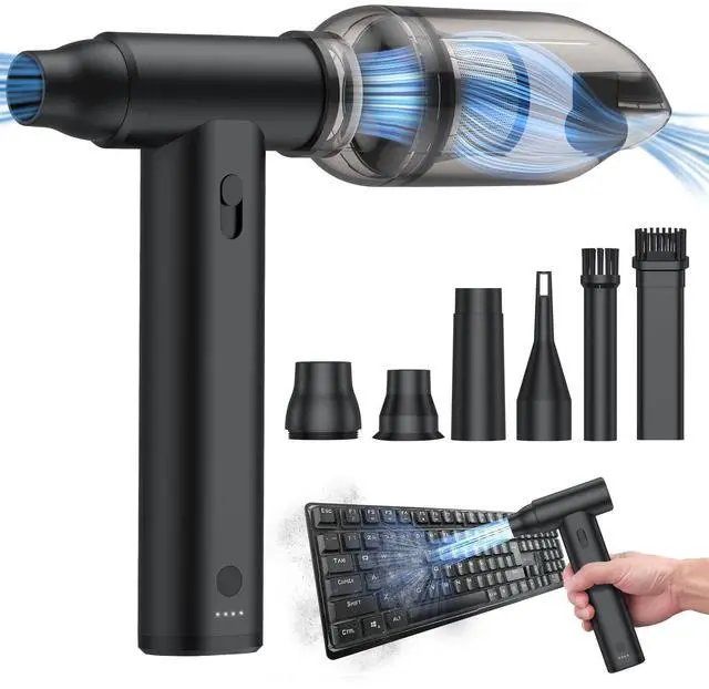 This compressed air duster uses a brushless motor, the maximum speed can reach 125000rpm, the top wind speed can reach 37m/s, powerful performance air broom. And also it is equipped with a vacuum filter, which can be installed on the air inlet to transform into a vacuum cleaner.