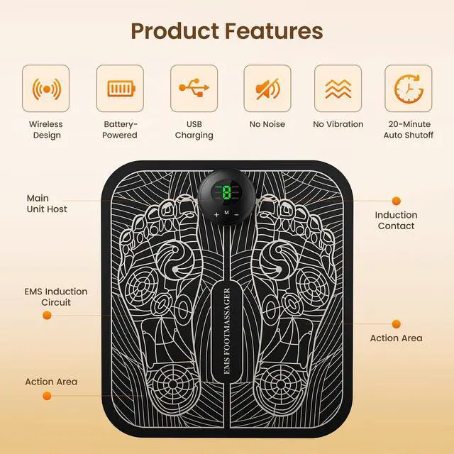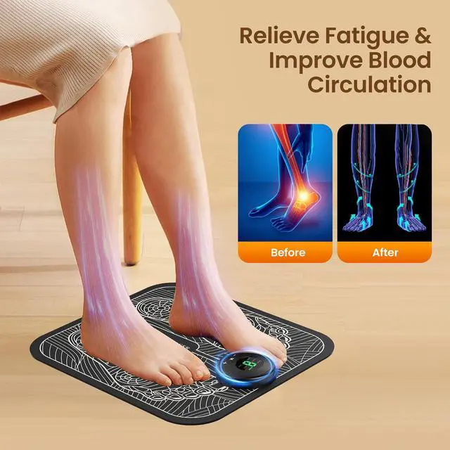 • Advanced EMS Technology: Leveraging Electrical Muscle Stimulation (EMS), the massager delivers gentle pulses to stimulate nerves and muscles, promoting deep tissue relief from common issues like neuropathy, plantar fasciitis, swelling, and cramps while improving blood flow.