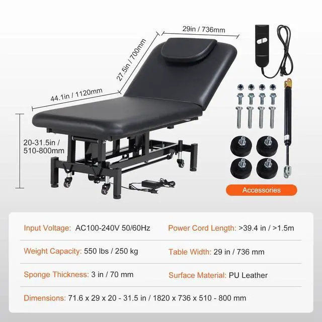 Dimensions: 71.7 x 28.7 x 20 - 31.5 in / 1820 x 730 x 510 - 800 mm