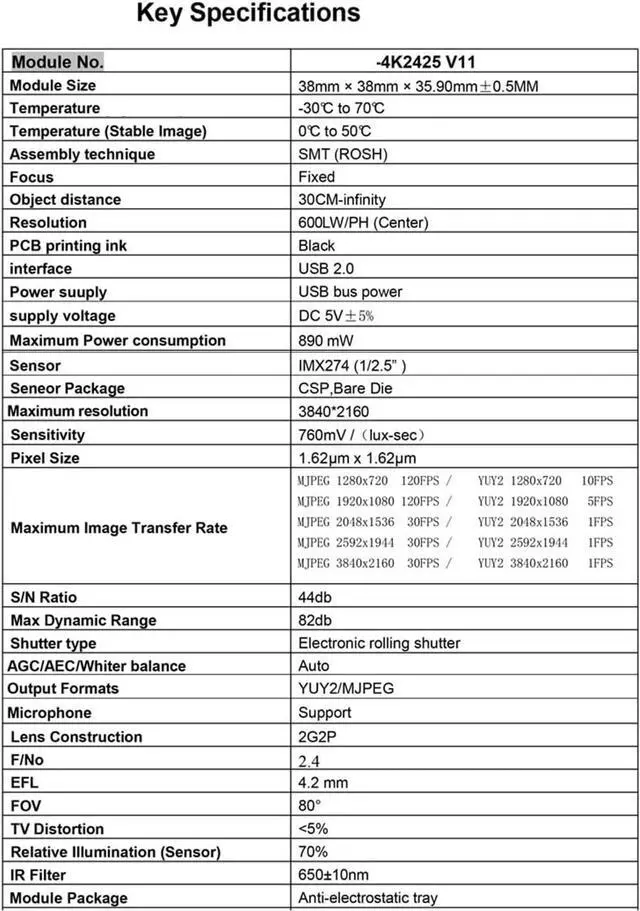 Capturing 4K at 30fps with this 8.29MP USB camera module featuring 30fps autofocus for seamlessly motion trackings in fast pace environment