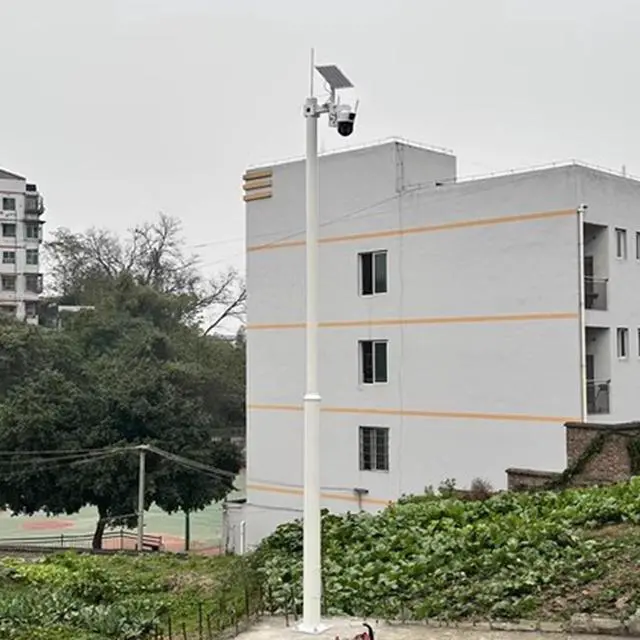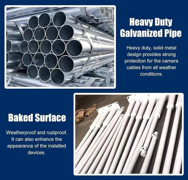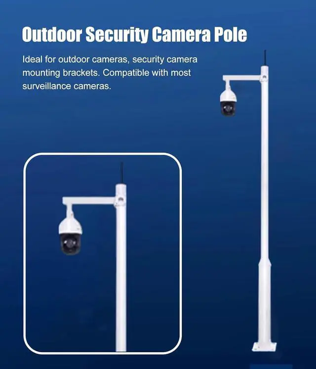 Weatherproof Metal Pole Heavy duty, weatherproof, solid metal design provides strong protection for the camera from all weather conditions. The security camera mounting pole provides a stable and secure base for mounting devices, ensuring that they stay in place and do not fall or get damaged