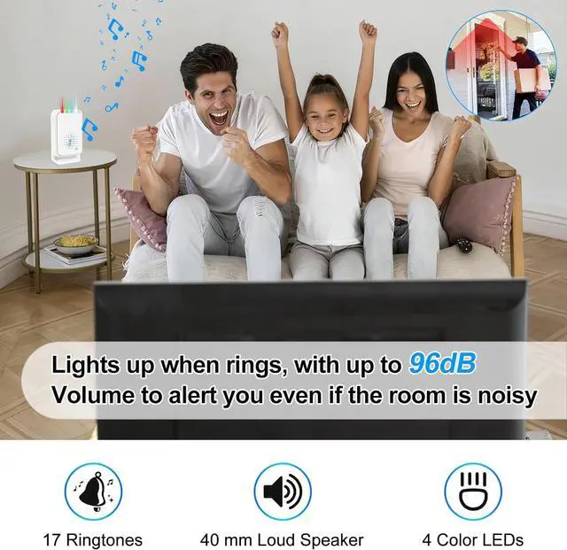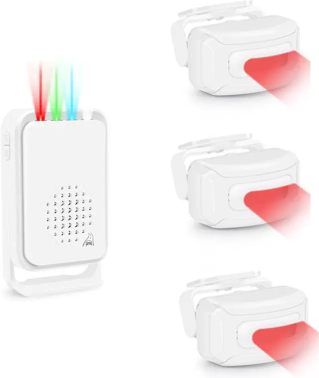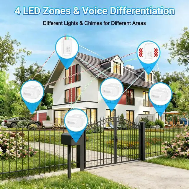 Flexible Pairing: One alarm pairs with up to 8 remotes and 32 wireless detectors including door sensors.The motion sensor chime outdoor features 4 color-coded LED zones for organized monitoring.