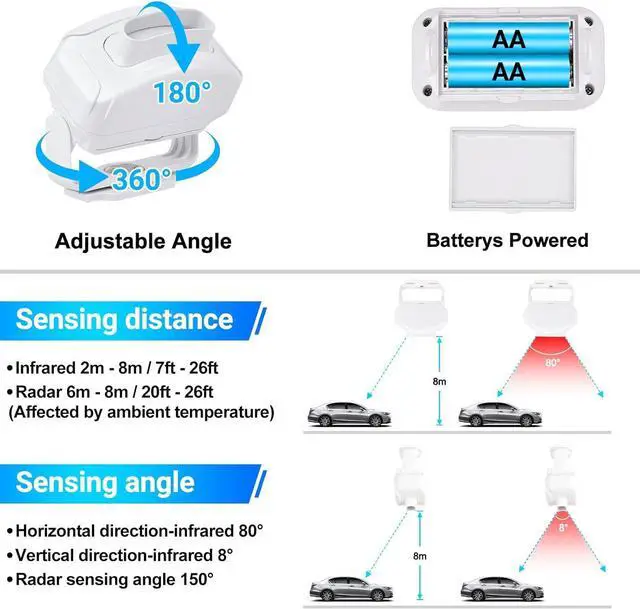 Infrared & Microwave Radar Detection: The motion detector alarm uses both infrared and microwave radar to cut down false triggers.When a person or animal enters the area,the receiver alarms instantly.Suitable for indoor and outdoor placement like driveways,garages,and mailboxes.
