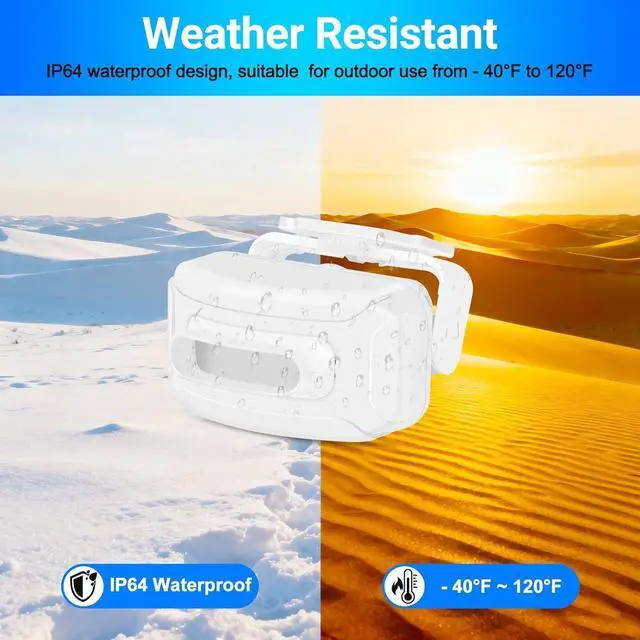 IP64 Weatherproof Design: Featuring a triple-layer sealed construction,the motion sensor alarm delivers dependable performance even in high humidity or rainy weather.Enhanced with intelligent anti-interference technology for minimized false triggering.