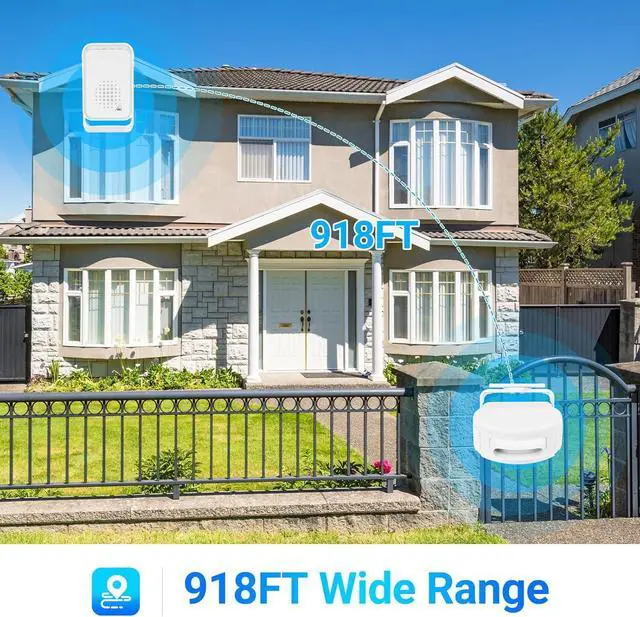 Long Wireless Range: The sensor alarm outdoor reaches up to 918ft in open areas, ideal for large properties or multi-floor homes.Detection ranges adjust between 7-26ft based on surroundings.