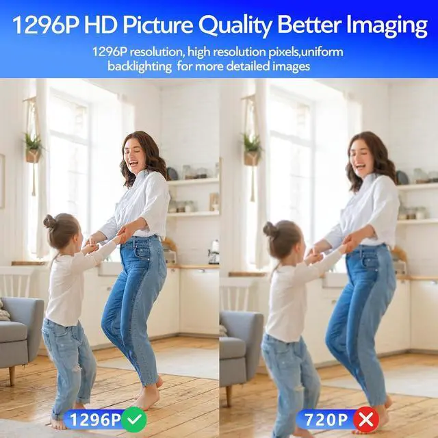 1296P HD Resolution with Night Vision: Enjoy crystal-clear 1296P HD video quality, comparable to 2K, even in low-light or complete darkness, thanks to its 6 infrared LED lights.