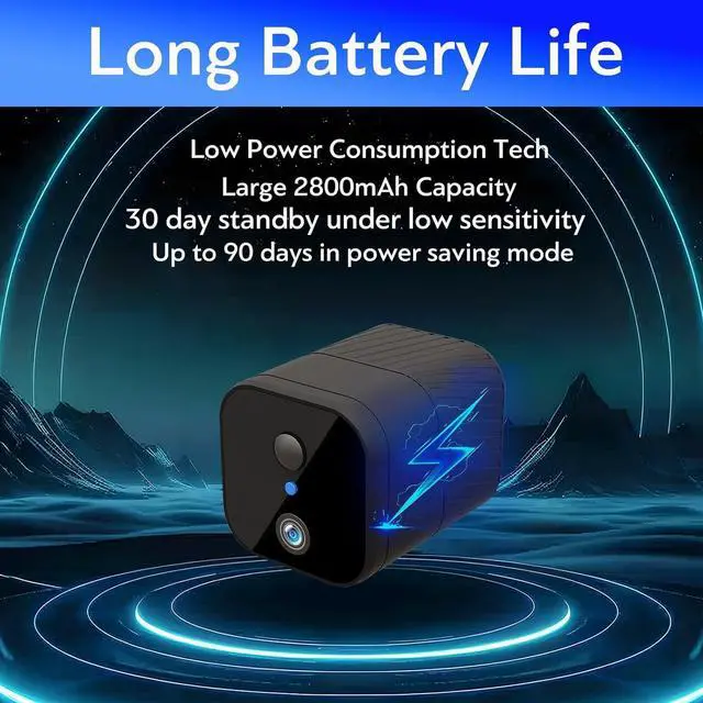 Long-Lasting Battery Life: Equipped with a 2800mAh built-in battery and low-power consumption technology, the camera can last up to 30 days in low-sensitivity mode and up to 90 days in power-saving mode. It also supports continuous use via USB-C charging.