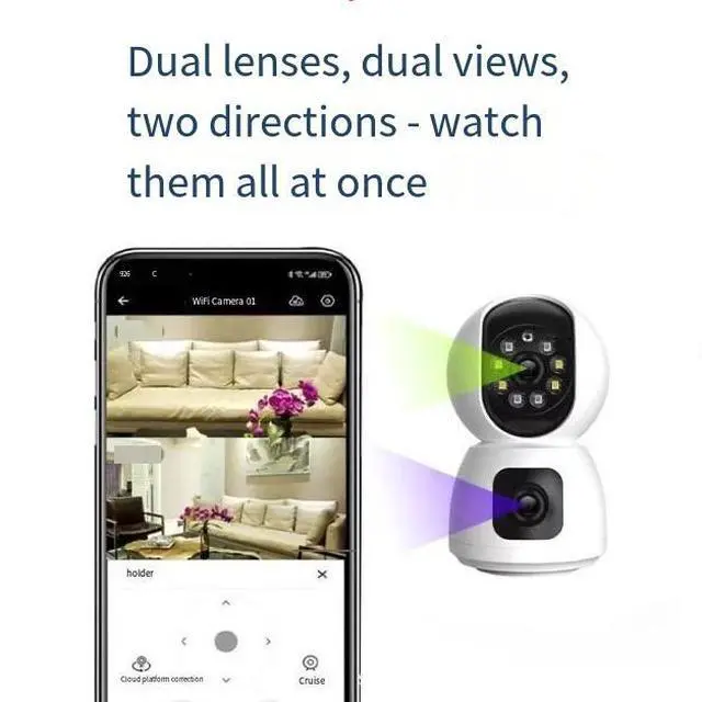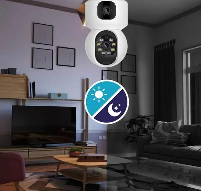 Secure your property with the Dual-Lens Indoor/Outdoor HD WiFi Security Camera. Featuring dual-lens design, 1080P HD video, and flexible mounting options (ceiling or desktop), this smart camera lets you monitor your home or business from anywhere via smartphone app. 180° image rotation ensures proper viewing regardless of installation orientation.