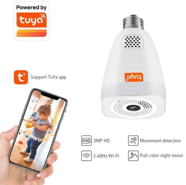 Monitor your entire room with the Tuya 360° Panoramic Fisheye Security Camera. Featuring 3MP HD video, full-color night vision, and a single 360° fisheye lens, this smart camera lets you see every corner of your home from anywhere via Tuya Smart app. Perfect for baby rooms, living rooms, and offices.