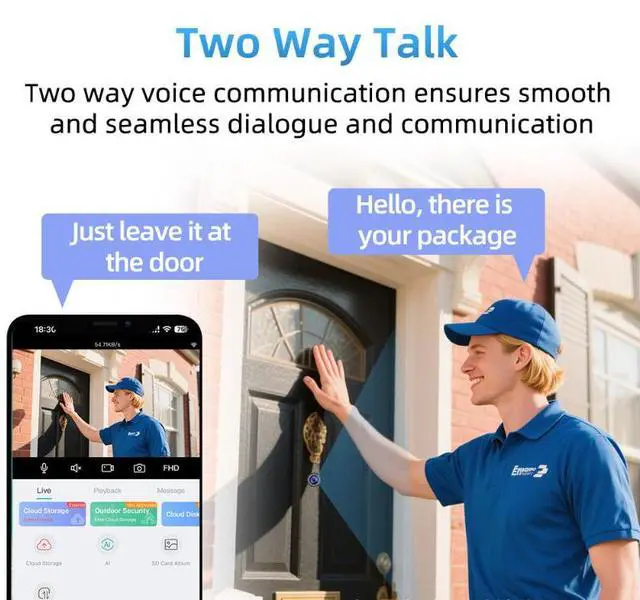 Two-Way Audio & Metal Housing: Built-in microphone and speaker for real-time communication; durable metal housing for long-lasting use.