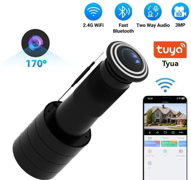 Secure your home with this 3MP Fisheye Security Camera. Featuring 2K ultra HD video, local storage, and two-way audio, this compact camera provides reliable surveillance without monthly fees.