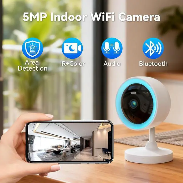 5MP Ultra HD Video: 5-megapixel high-definition resolution captures exceptional detailcrisp, clear footage for indoor home security.