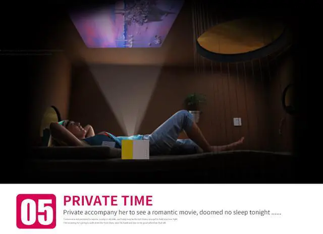 1. Sleek and stylish design, small and compact, but big wisdom: this pocket-sized projector is only 126.4*85.8*47.7mm, not much bigger than your smart phone. You can take it anywhere in your purse, pack or pocket. Ideal for home entertainment in a dark room, not recommended for Power Point or business presentations.