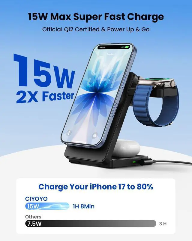 Why Choose CIYOYO Qi2 Certified 3-in-1 Fast Charger?