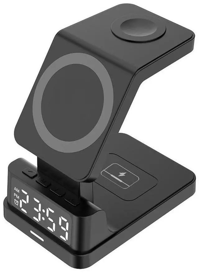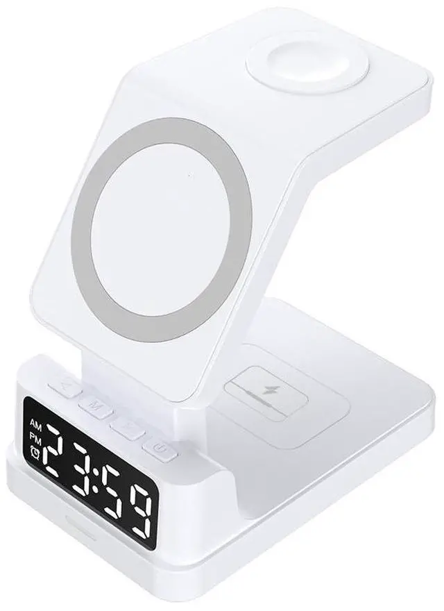 5 in 1 Wireless Charger with Alarm Clock Magnetic 15W Fast Charging Stand for Phone Watch Earphones