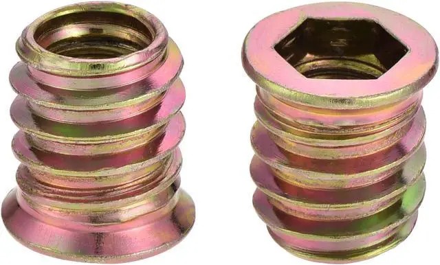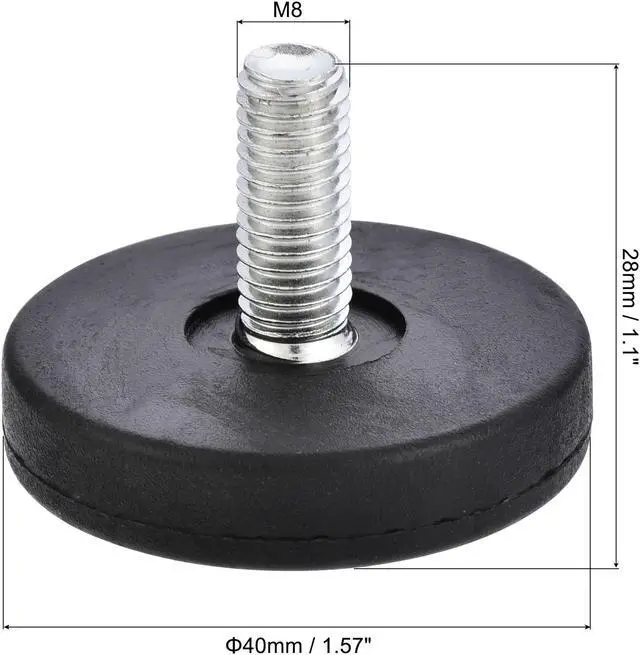 Descriptions: 1. Material - The threaded insert nut made of carbon steel, color galvanized surface treatment, high hardness, and perfect wear resistance. The furniture leveler made of iron and plastic, combine used of them works well. 2. Advantage - If the floor is rough or the furniture leg is bad, you can install it at the bottom of your product, it can effectively protect the product during the movement, prevent the floor from abrasion, reduce noise. 3. Applications - Such as TV stands, table, cabinet, shelves, chairs, desk, racks, mechanical equipment, fitness equipment, and so on. 4. Easy to Install - When using it with a threaded insert nut. a. Make a hole smaller than the outer diameter of 0.2 - 0.5 mm, and lock the nut with a tool. When the nut is locked, some wood glue can be applied to the outer teeth to make the fastening effect good. b. Insert the nut into the wood of the furniture foot, and then screw the leveling Legs into the Inner Thread of the nut.