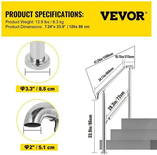 Distance Between Vertical Bars: 28.3" /72 cm