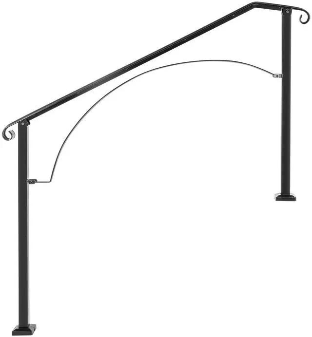 Handrails for Outdoor Steps, Fit 4 or 5 Steps Outdoor Stair Railing, Arch#4 Wrought Iron Handrail, Flexible Porch Railing, Black Transitional Handrails for Concrete Steps or Wooden Stairs