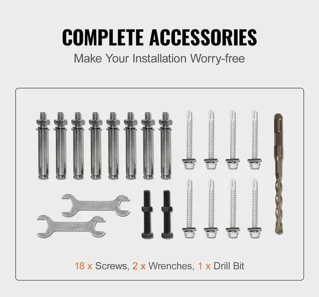Package Content 1 x Handrail 2 x M6*20 Bolts 8 x Self-Tapping Screws 8 x Expansion Screws 2 x Open-Ended Spanners 1 x Drill Bit