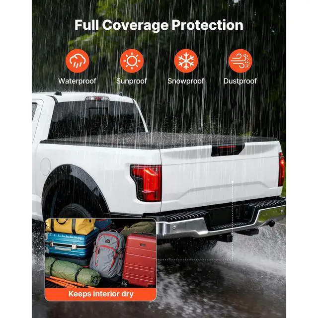 Hard Tri-Fold Truck Bed Tonneau Cover, Compatible with 2015-2025 Ford F150 5.5 ft (67.1 in) Bed, Waterproof Folding Truck Tonneau Cover with Heavy-Duty Fiberglass and Aluminum Alloy Support Bar