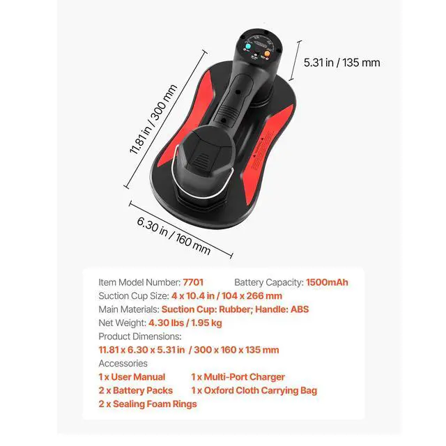 Suction Cup Size: 4 x 10.4 in / 104 x 266 mm