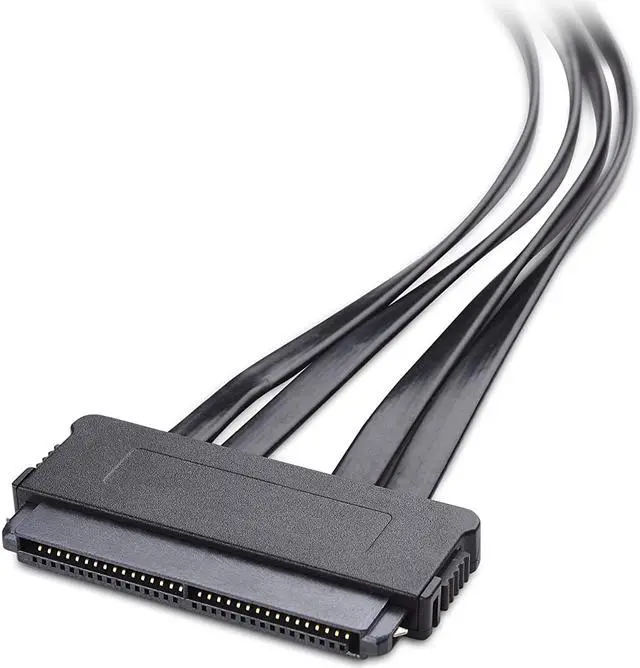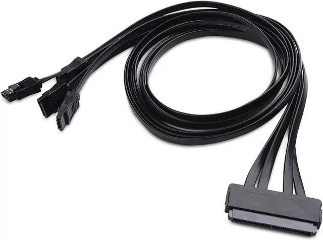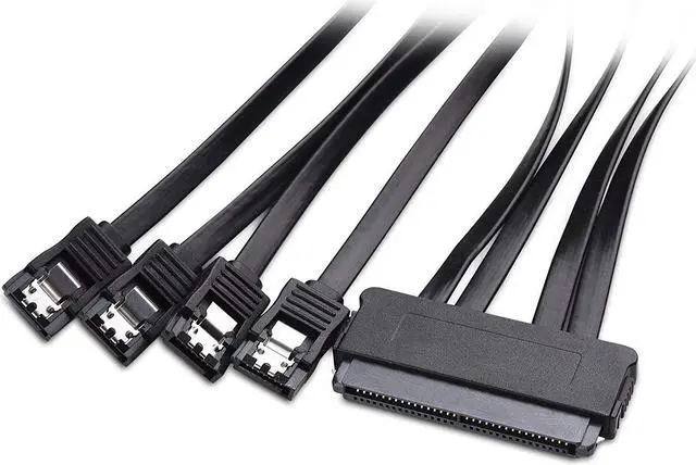 - MULTILANE BREAKOUT CABLE with a flat cable design and a 32pin SAS SFF 8484 target connector fans out into 4 separate 7 pin latching SATA connectors; Sturdy molded connectors provide a secure connection; P1 to P4 markers provide easy ID after installation; Low profile SATA connectors have easy-grip treads with stainless steel latches to prevent accidental disconnection