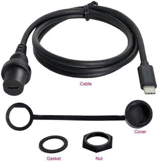 Waterproof USB-C Type-C USB 3.1 Extension Flush Car Mount Extension Cable for Dashboard Panel