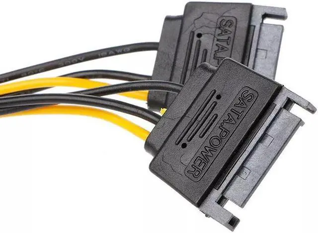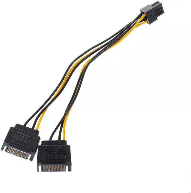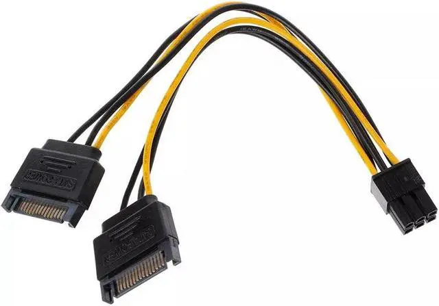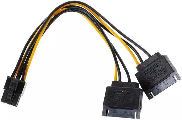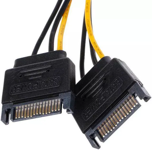 Convert two 15-pin SATA power supply connectors to an 6-pin power connector, increasing the current of video card.