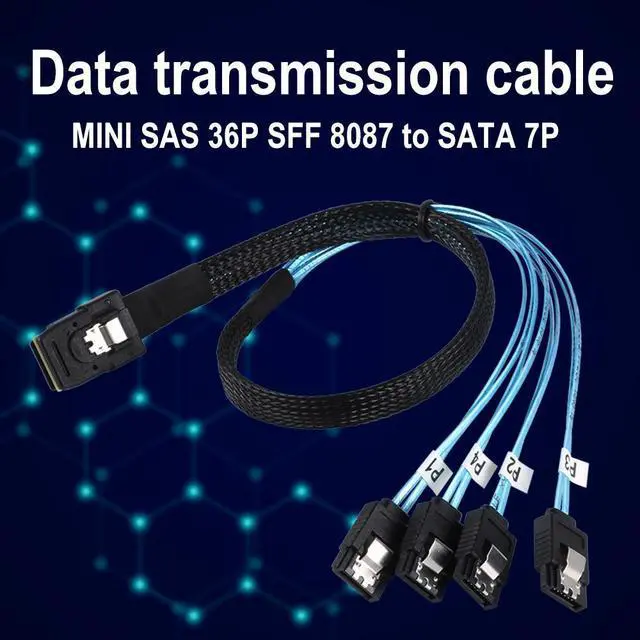 Data transmission cable, MINI SAS 36P SFF 8087 to SATA 7P.