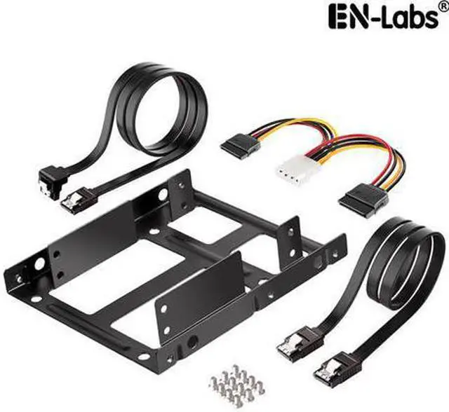 Tiss 2X25TO35MAKIT Metal Dual 2.5" to 3.5" Hard Drive Bay Mounting Bracket w/ SATA Data Cable and Power Adatepr Cable- 2 X 2.5" to 3.5" HDD / SSD Mounting Bracket Kit - BlackMount two 2.5 in SATA SSDs/HDDs into a single 3.5 in drive bay w/ 2 x 18" SATA cable and molex to 2 x SATA 15pin power splitter Black metal metrial for durable using