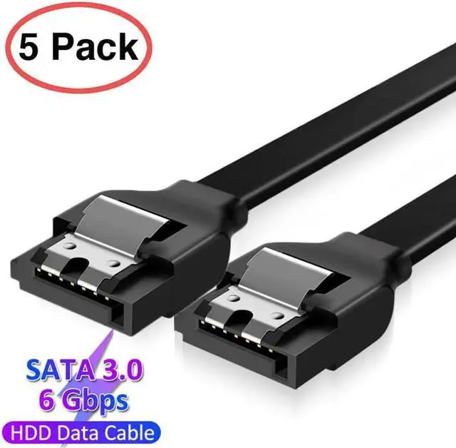 SATA Cable III 5 Pack 6Gbps 7pin Female to Straight Data Cable with Locking Latch Compatible for SATA SSD, HDD, CD Driver, CD Writer, 20 Inch Black