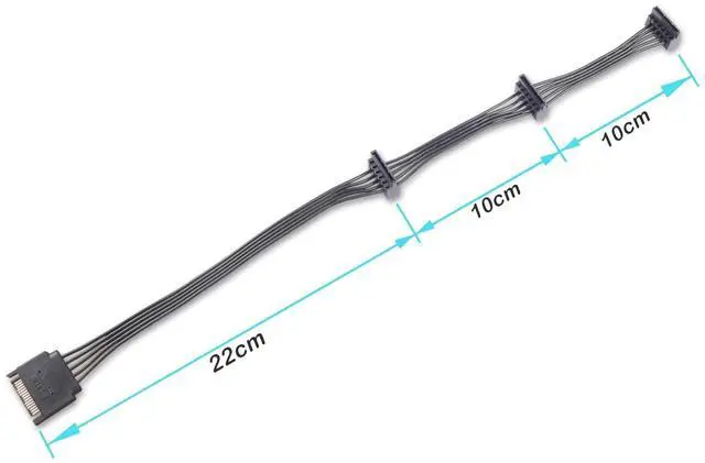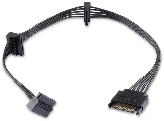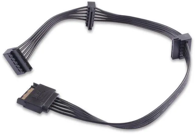 This SATA power cable 1 to 3 power splitter is ideal for your computer or server expansion. It not only converts one 15-pin SATA connector into five 15-pin SATA connectors to meet your multi-device power needs, but also utilizes high-quality 18AWG side-by-side cables to ensure the stability and reliability of power transmission. Its wide range of compatibility and extension cable design allows for more flexible cabling, while the black exterior design is aesthetically pleasing. Choose this SATA Power Splitter to make your device expansion easier and more efficient and enhance your experience!