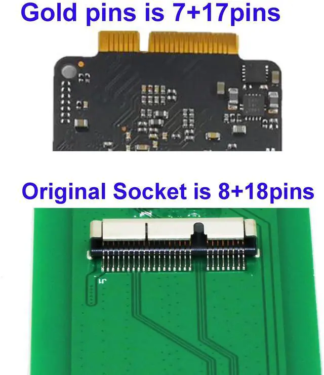 Notice: pls notice that the socket is not original,the SSD pins will not be fit exactly.Pls insert SSD according to the chart on PCB board.