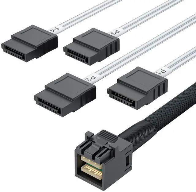 Internal Mini SAS HD SFF-8643 to 4xSATA Cable, with Sideband Signal for HDD/SSD Backplanes, Servers & RAID Cards, 1-m(3.28ft)