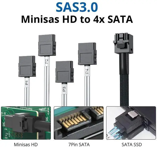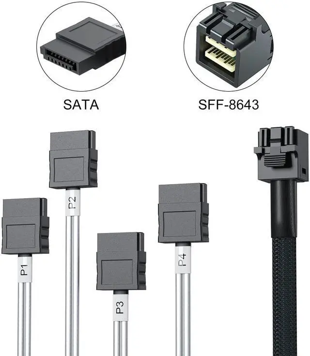 Premium quality Mini SAS HD connector. SFF-8643 HD Mini SAS to 4* SATA Backplanes/Adapters/ Expander, to provide for 6Gbps connectivity internal to the server between the SAS/HBA controller and SAS hard drive