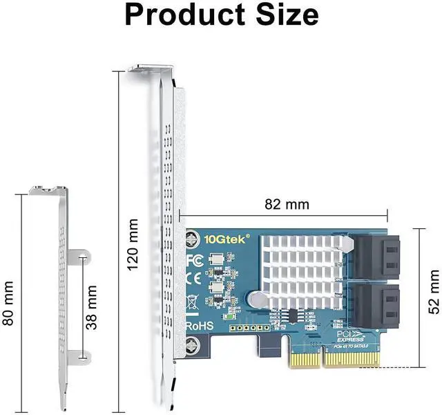 4 independent SATA ports enable simultaneous connectivity for multiple storage devices (e.g., HDDs, SSDs, optical drives), perfect for NAS, servers, or workstation upgrades. Full height and low profile bracket included.