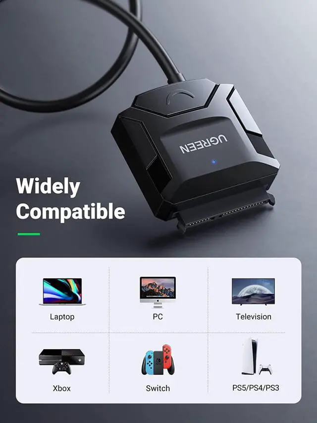 Wide Compatibility: This SATA III to USB 3.0 adapter is compatible with PS4, Xbox, Windows 10/ 8.1 /8/7/Vista/XP, Mac OS. Supports 2.5 / 3.5 '' SATA HDD SSD up to 12TB max.