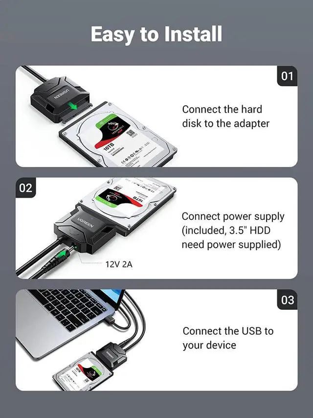 12V 2A Power Adapter Included: This adapter cable is equipped with a DC-Jack port and comes with a 12V/2A Power Adapter, which provides enough power supply for 3.5" hard drive. Please be kindly noted that power supply is necessarily required if a 3.5" SATA HDD SSD is connected.