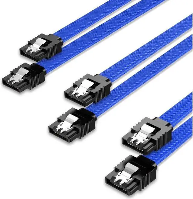 3PACK SATA Cable III 3 Pack 6Gbps Straight HDD SDD Data Cable with Locking Latch 18 Inch for SATA HDD, SSD, CD Driver, CD Writer, Blue