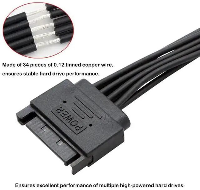 5. Note: One 15-pin SATA male expands multiple 15-pin SATA female splitters only for devices with SATA ports, please check the device ports carefully before purchasing or contact us.