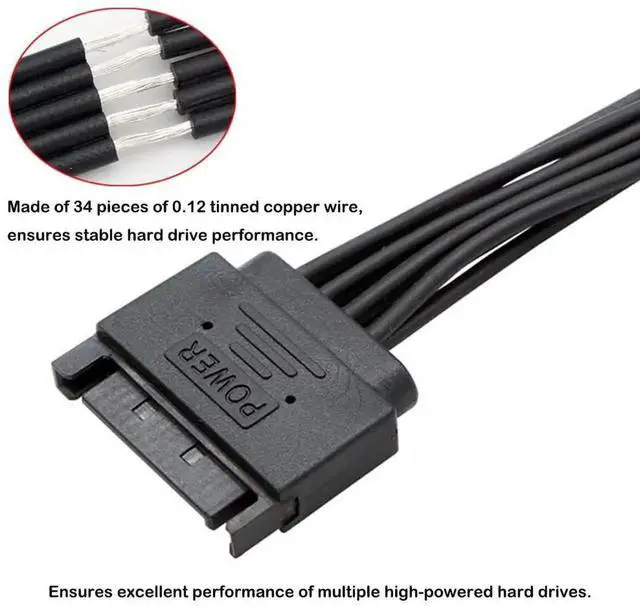 Note: One 15-pin SATA male expands multiple 15-pin SATA female splitters only for devices with SATA ports, please check the device ports carefully before purchasing or contact us.
