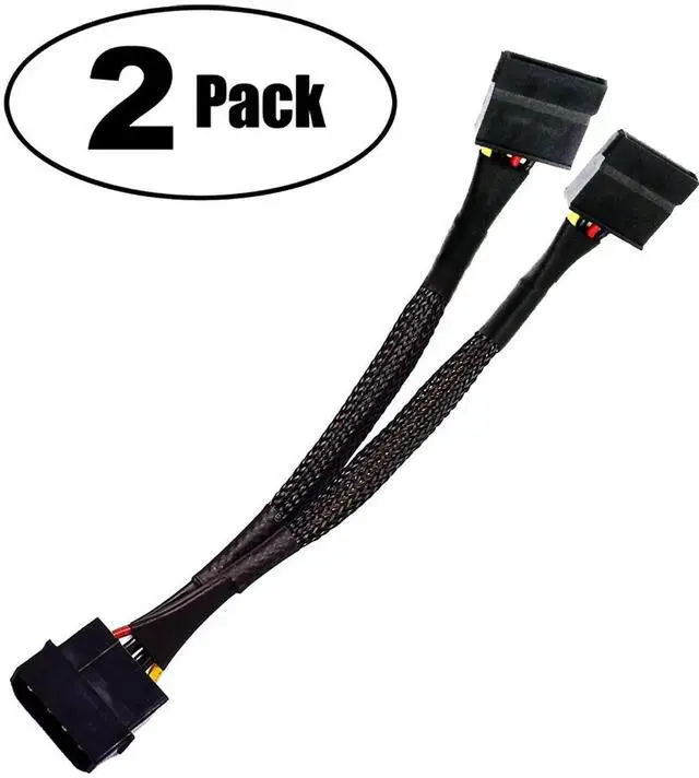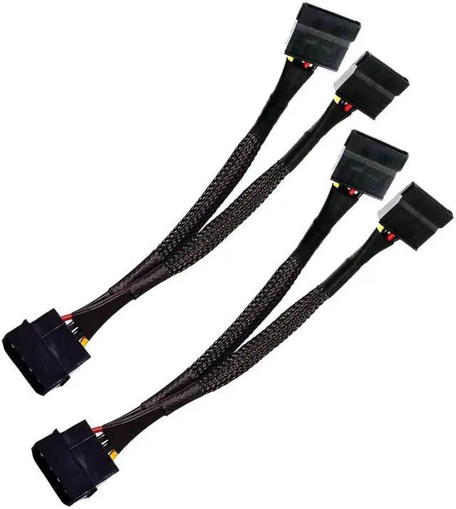 4 Pin Male IDE Molex to Dual 15 Pin Female SATA Power Splitter Converter Adapter Cable Hard Drive HDD SSD Extension Cable Sleeved Braided 8 Inches (2 Pack)