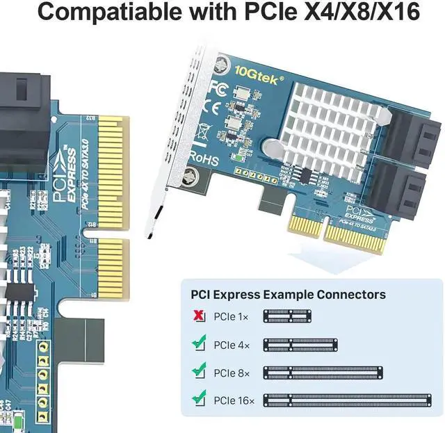 Compliant with SATA3.0 standards, backward compatible with SATA1.0 and SATA2.0. Support PCIe1.0, 2.0, 3.0 protocol on motherbaord PCIe X4, X8, X16 slot. NOT support hot swapping.
