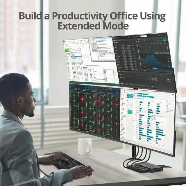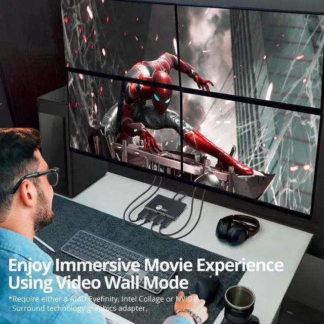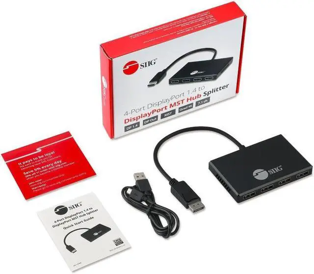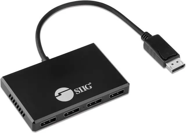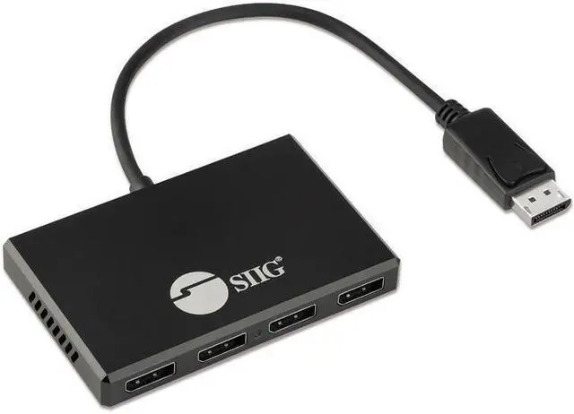 1x4 Splitter, connect up to four DisplayPort displays to single DisplayPort 1.4 output with Multi-Stream Transport (MST), no driver required, Windows PCs, not Mac OS compatible Connect up to four DisplayPort displays to single DisplayPort 1.4 output with Multi-Stream Transport (MST) technology to boost your productivity Provides multiple display modes such as Mirror mode* same content on each display, Extended mode with individual content on each display, and Panoramic Video Wall mode which combines multiple monitors to use as one large display.