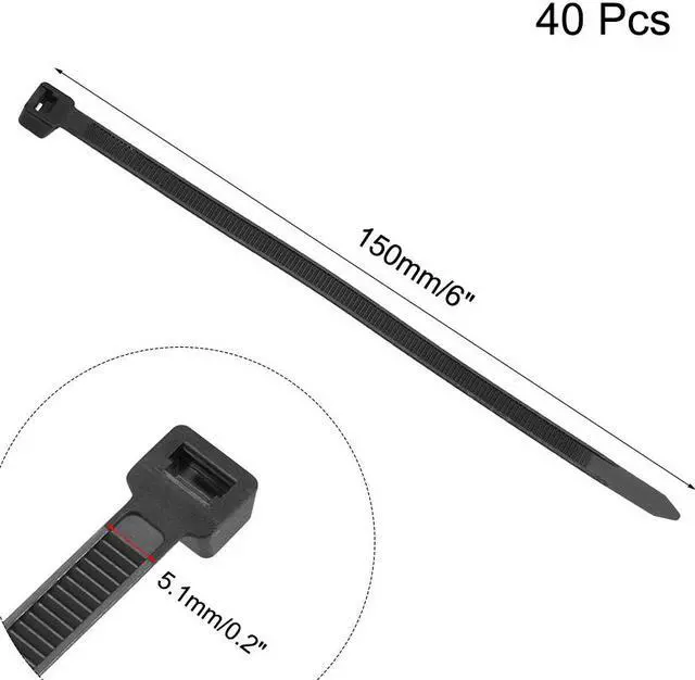 Cable Zip Ties 150mm x5.1mm Self-Locking Nylon Tie Wraps Black 40pcs