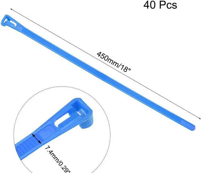 Reusable Cable Ties 450mmx7.4mm Adjustable Nylon Zip Ties Wraps Blue 40pcs