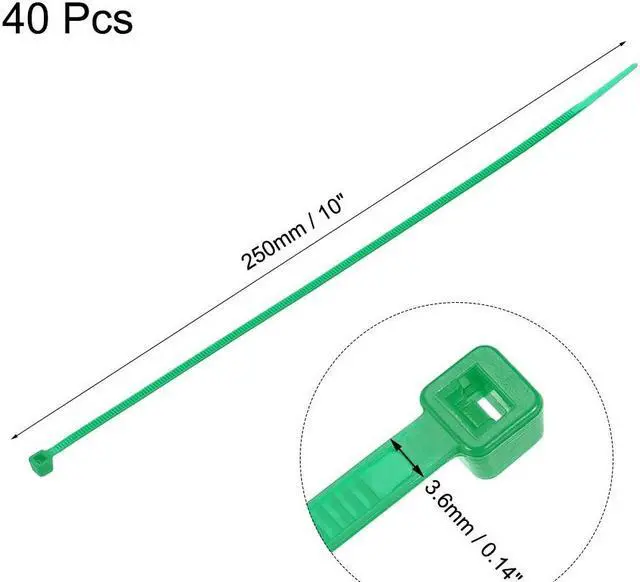 Cable Zip Ties 250mmx3.6mm Self-Locking Nylon Tie Wraps Green 40pcs