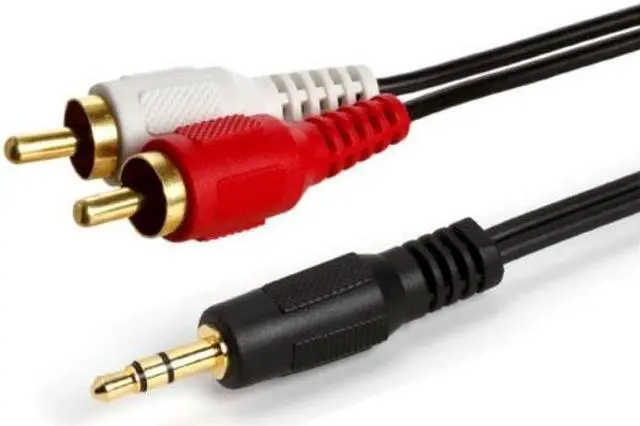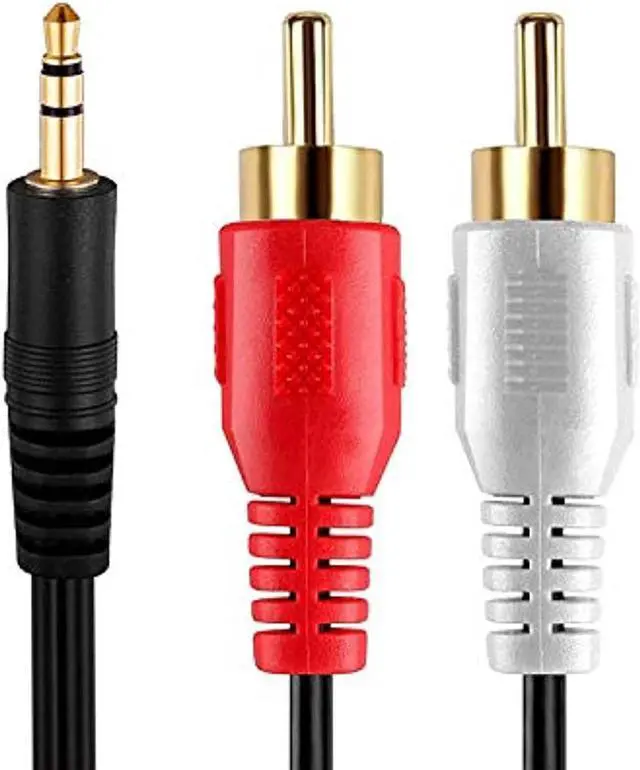 3.5mm (1/8) Mini Plug to 2 RCA Stereo Cable, Hook Up Computer, MP3, iPod to Your Stereo System This cable has a Stereo (1) 3.5mm(1/8) male connector and goes to (2) RCA male plugs.You can connect a portable CD player or computer system to your home stereo or TV with this cable.This cable set maximizes signal transfer for optimum sound. Shielded Y-Cables - 3.7mm OD Black PVC Jacket Fully Molded Gold-Plated RCA Plugs Color-Coded Red-White to Black AWG26 Stranded Copper Center Conductor Low-Loss 95% Spiral-Wound Copper Shield 99.99% Pure Oxygen-Free Copper Wire